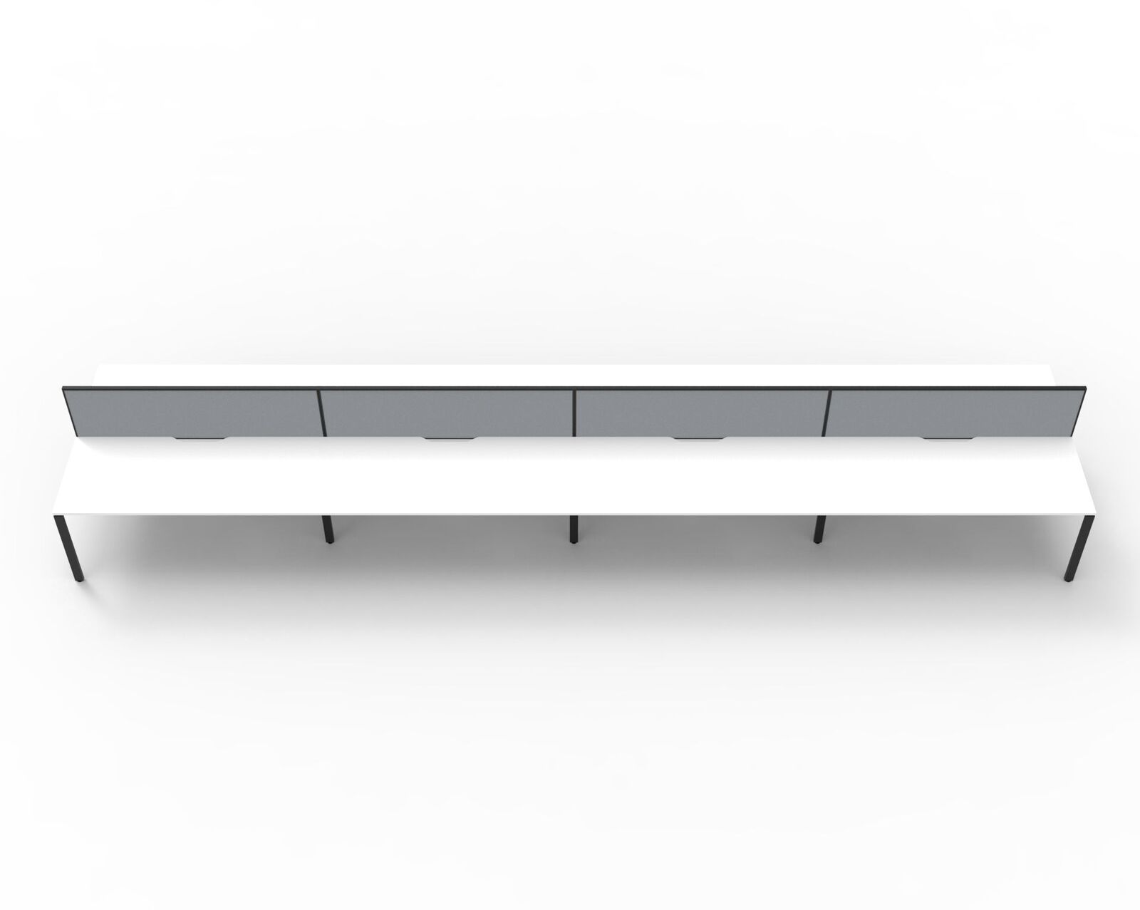 Maximise space and create an efficient working environment with Deluxe Rapid Infinity. 750mm deep Enviroboard tops, with scallop for cable access, and a recessed leg to create full leg access in long runs of workstations.