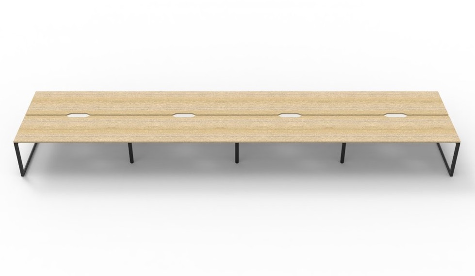 Deluxe Rapid Infinity 8 Person Double Sided Workstation Black Frame Natural Oak Top [ 4800mm W x 1530mm D x 730mm H ]
