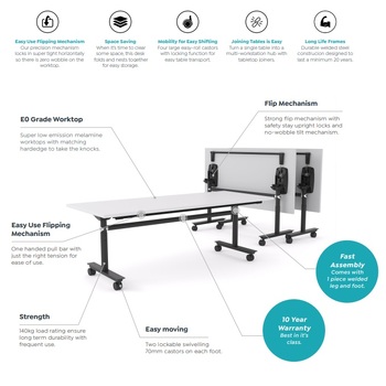 Ascend Tech Adjust Flip Table - 1500mm x 600mm - White Top