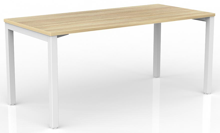Axis straightline desk with white powdercoated 50mm x 50mm frame and 50mm x 25mm rail. 25mm studio new new oak worktop with PVC edge.