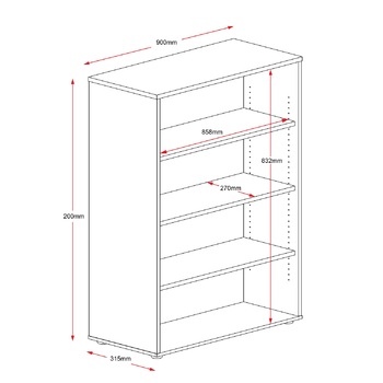 - 3 Adjustable shelves in 1200mm Height Bookcase
