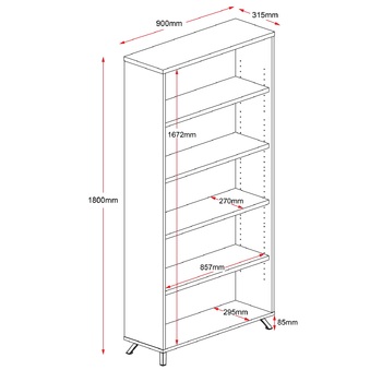 900mm (90cm) Wide x 315mm Deep x 1800mm (180cm) High