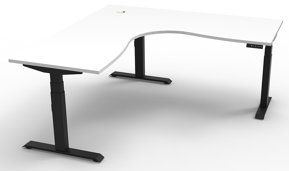 Boost+ Dual Motor Corner Electric Sit Stand Desk [Add Cable Tray: No] [Desktop Size: 1500mm x 1500mm] [Frame Colour: Black] [Top Colour: White]
