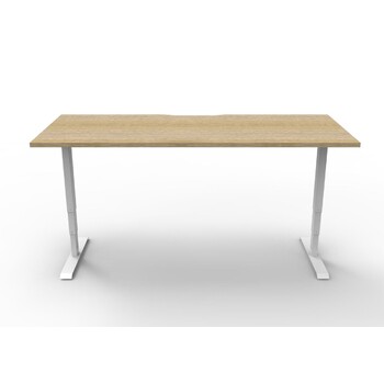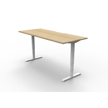 Elevate Height Adjustable Workstation White Frame Natural Oak Top [Size: 1800mm W x 750mm D x 645mm-1275mm H]