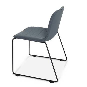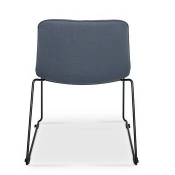 The Smooth Sled chair is a slim, modern, stacking upholstered chair with a slimline design and elegant look. The chair works equally well as a visitor or meeting chair, or in reception areas or breakout areas. The seat is upholstered in charcoal Yuna fabric. The all black powdercoat sled base is stackable and has dual purpose feet/connector