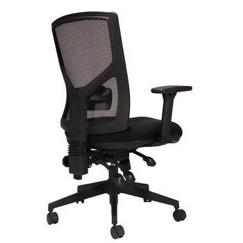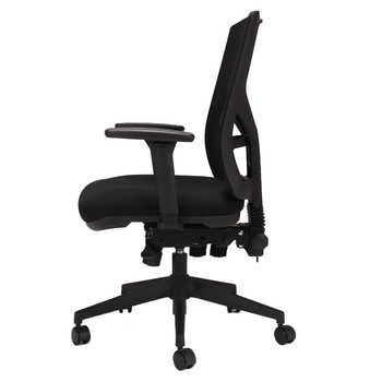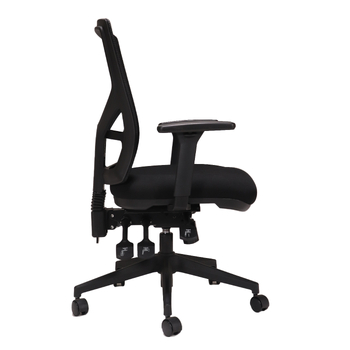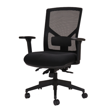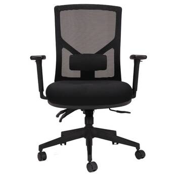 The popular Breeze Ergonomic Mesh Back Office Chair features a black mesh back with black fabric seat pan, height adjustable lumbar support and a quality 5 star spider base on castors.
