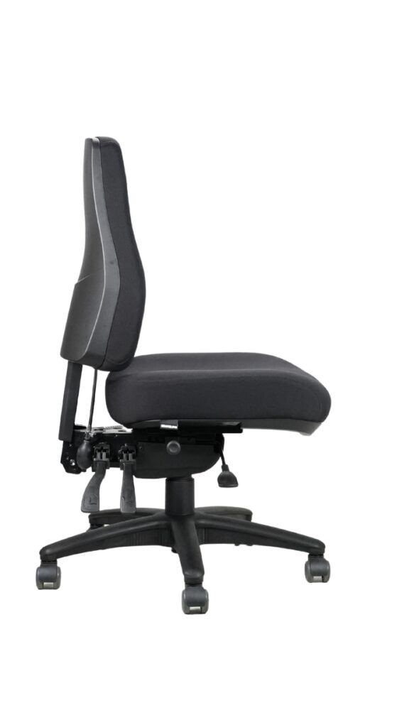 The Ergo Air Ergonomic Heavy Duty Office Chair is a high back operator chair and stands out in the crowd for its fully ergonomic heavy duty 4 lever mechanism, pneumatic lumbar pump adjustment and high grade moulded foam seat.