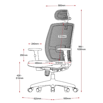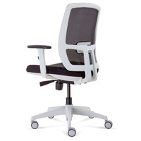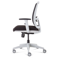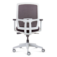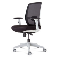 The luminous executive mesh back chair features a modern white frame with upholstered seat and mesh back.