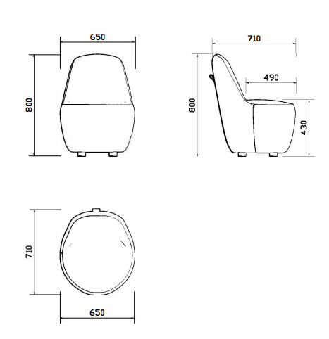 Dimensions: 650mm (W) x 710mm (D) x 800mm (H).