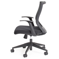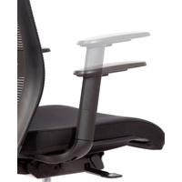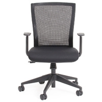 The Balance task chair features a black mesh back, fabric sliding seat with moulded foam and adjustable arms.