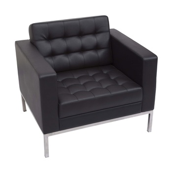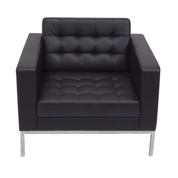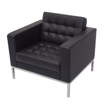 The Venus Single Reception Lounge Chair features a soft black PU finish with stainless steel frame and is perfect for a reception or waiting area.