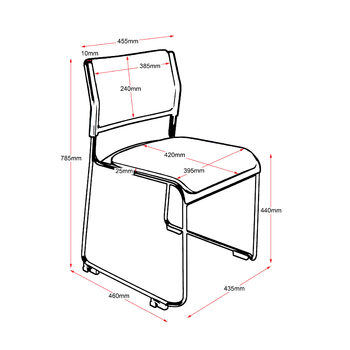 The Wimbledon Stackble Chrome Sled Base Chair is perfect for event or conference seating. It features a chrome sled base frame with black cushion seat and back.