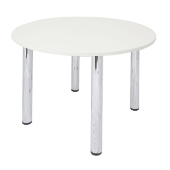 The Chrome 4 Leg Round Meeting Table 25mm thick melamine table top with 4 chrome legs.