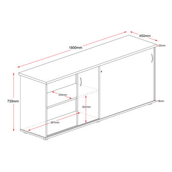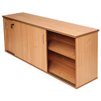 The Express Large Beech Storage Credenza features a solid lockable melamine construction with metal runners and an adjustable shelf.