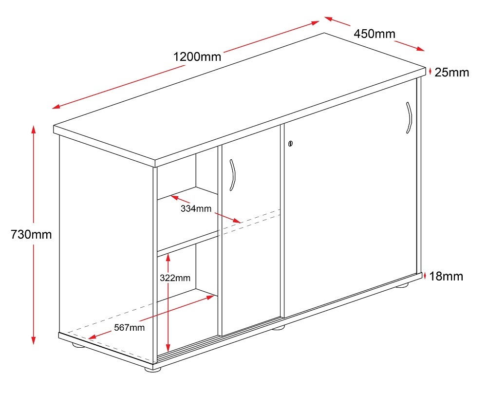 - 1200W x 450D x 730H Sliding Door Credenza