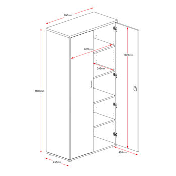 - 1800H x 900W x 450D (3 Adjustable Shelves)