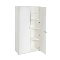 The Express White Storage Lockable Cupboard features a solid melamine construction with adjustable shelves and a 5 year warranty.