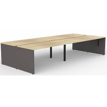 Deluxe Rapid Infinity 4 Person Double Sided Workstation Black Frame Natural Oak Top - 3600mm W x 1530mm D x 730mm H