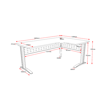 - 1800mm (180cm) Wide x 1200mm (120cm) x 750mm (75cm) Deep x 730mm High