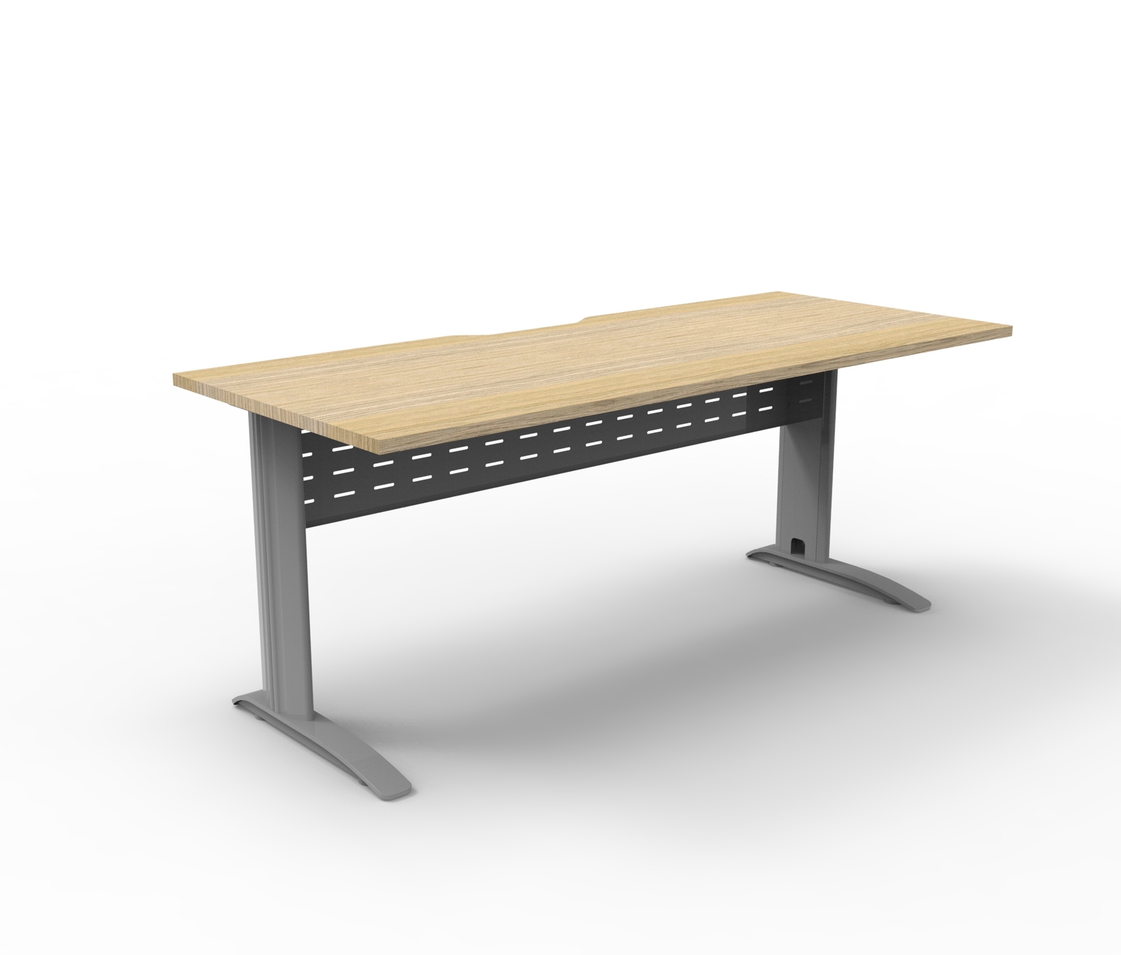Corner Workstations come with an E1 One-Piece Tabletop with Cable Tidy, Perforated Metal Modesty Panel and Adjustable Feet.