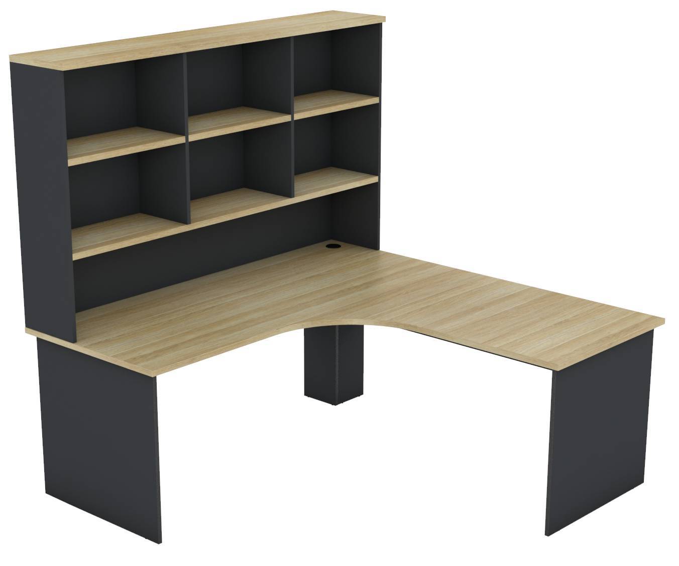 EkoSystem Corner New Oak/Charcoal Desk with Hutch Package- 1800mm x 1800mm x 600mm