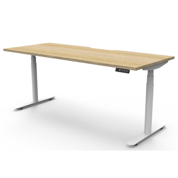 Halo+ Single Sided Height Adjustable Workstation White Frame New Oak Top - 1200mm x 750mm
