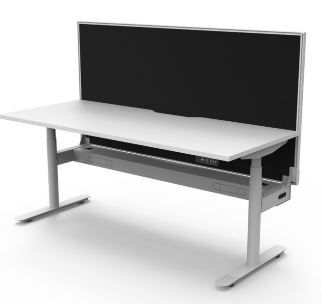 Halo+ Single Sided Height Adjustable Workstation White Frame White Top - 1800mm x 750mm-With Cable tray- With Screen