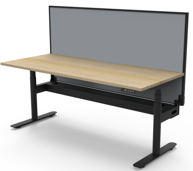 Halo+ Single Sided Height Adjustable Workstation Black Frame New Oak Top - 1800mm x 750mm-With Cable tray- With Screen