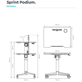 Built for convenience and functionality, the Sprint Podium features a compact, nesting design for efficient storage and smooth mobility. Its multiple locking positions provide enhanced stability, while the 800mm x 600mm work surface offers ample space for your essentials.