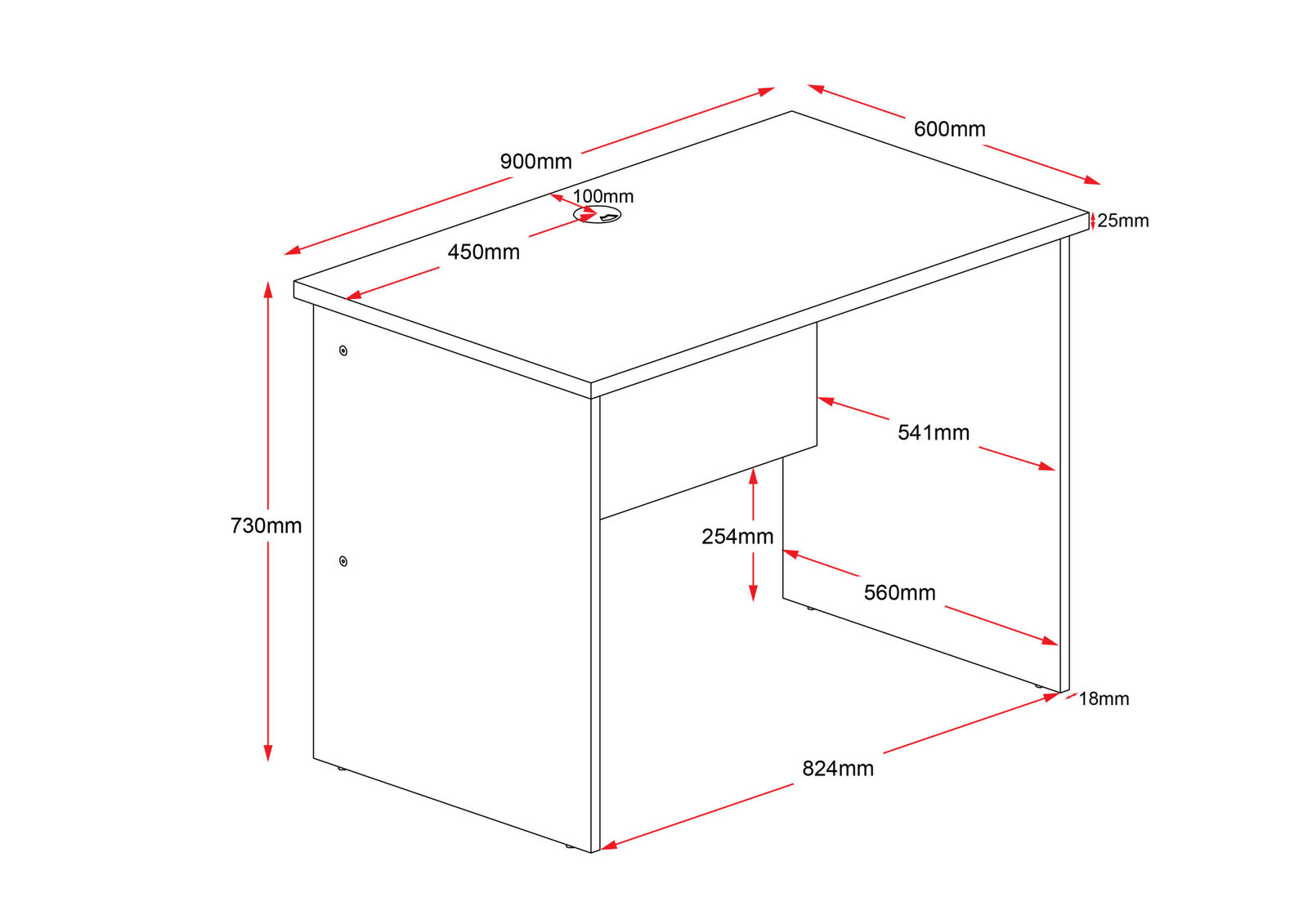 The Express small home office desk features a strong melamine construction with 25mm tops and 18mm side panels. This desk is a great option for children or a small laptop desk for the home.