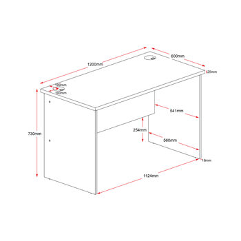 - 1200mm (120cm) Wide x 600mm (60cm) Deep x 730mm (73cm) High