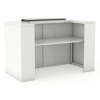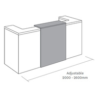 The Anvil Reception Counter features a 18mm white melamine construction with silver feature panel and adjustable width chassic to suit desks 1800mm (180cm) to 2400mm wide.