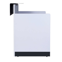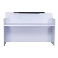 The rapid span modern white reception counter features a clean white design with black powder-coated cowl and kick-plate.