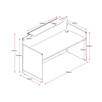 - 1800mm (180cm) Wide x 800mm Deep x 1170mm High (730mm high desk top)