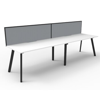 Eternity 2 Person Single Sided Workstation With Black Screen Black Frame White Top - 2400mm W x 780mm D x 730mm H