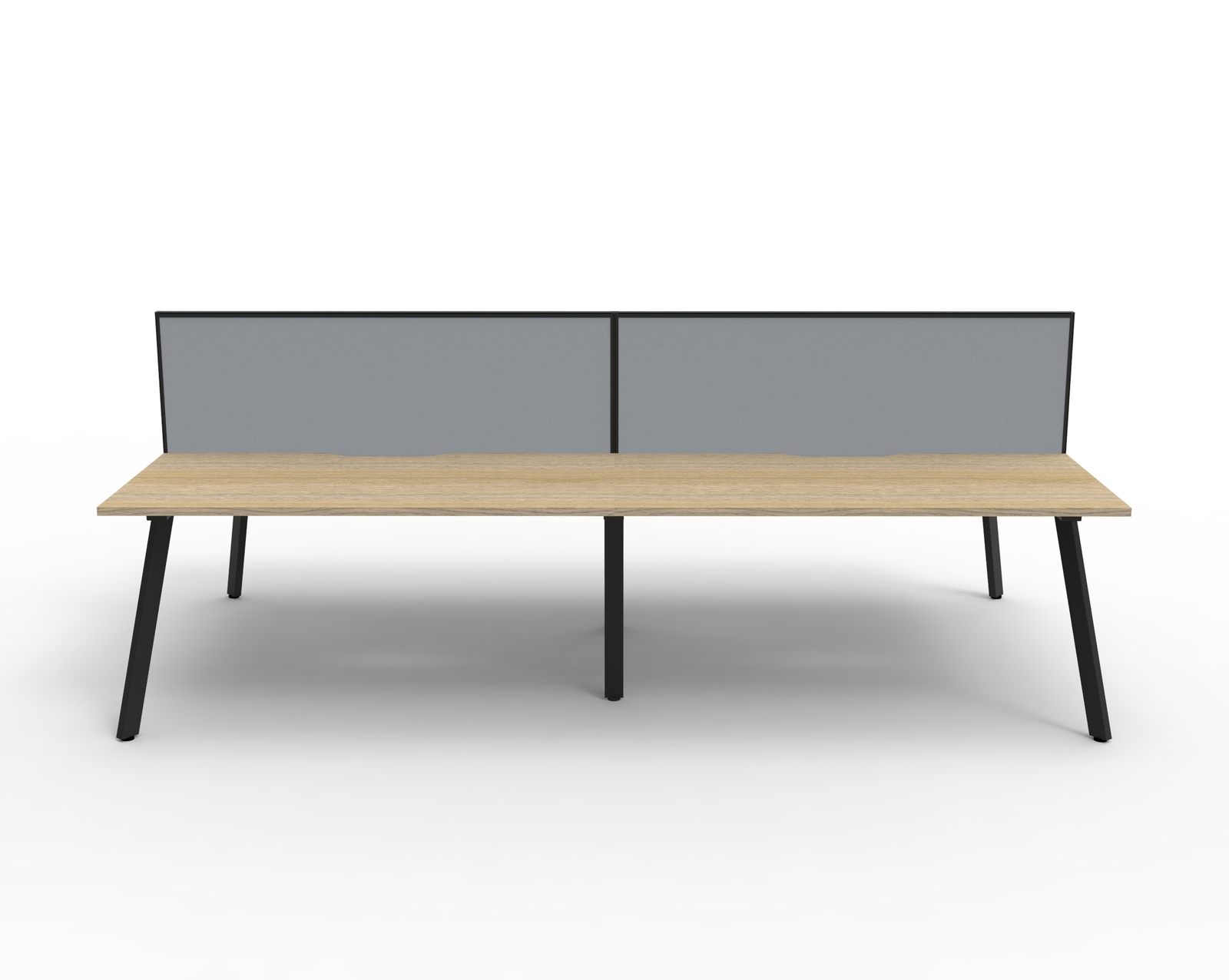 Eternity 4 Person Double Sided Workstation With Black Screen Black Frame Natural Oak Top - 2400mm W x 1530mm D x 1200mm H