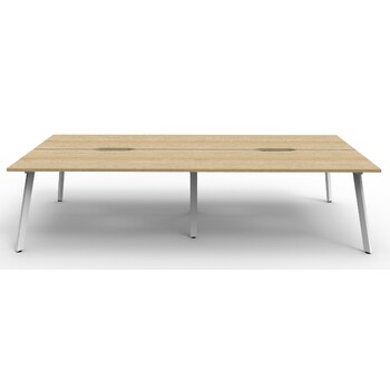 Eternity 4 Person Double Sided Workstation White Frame Natural Oak Top - 2400mm x 1530mm x 730mm