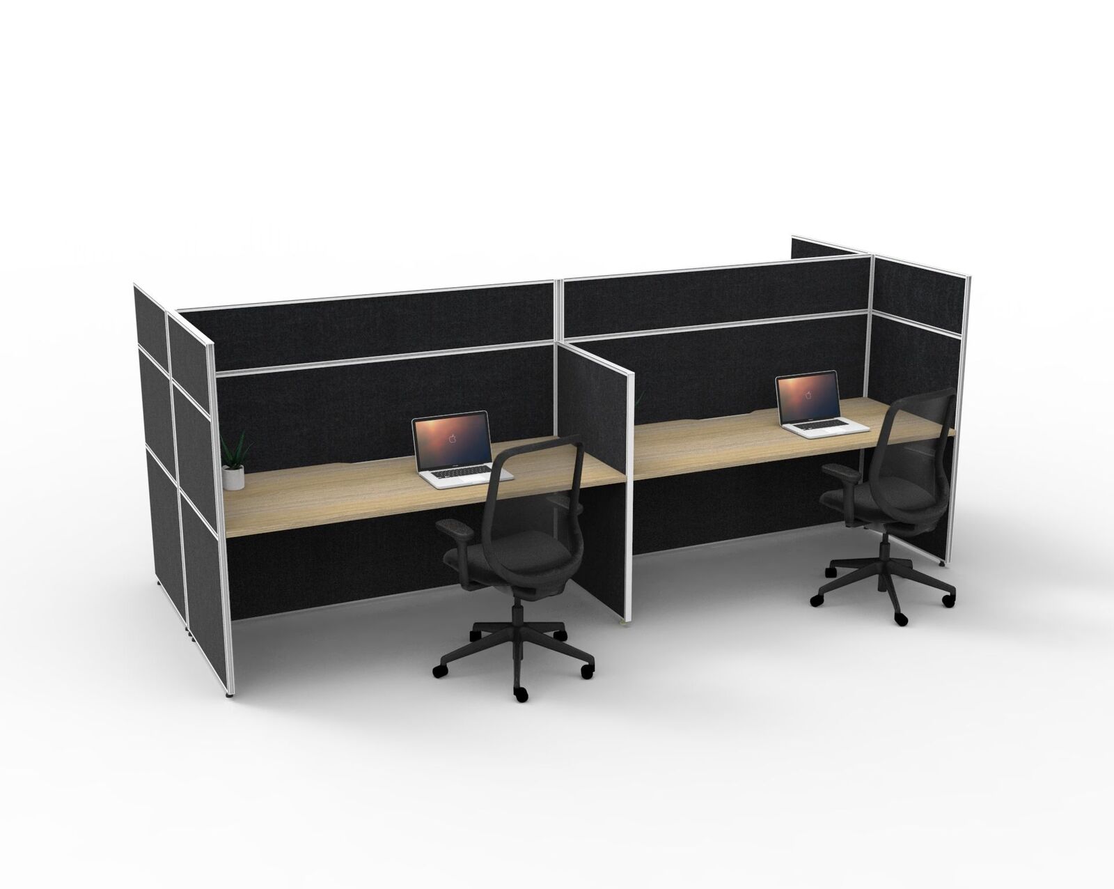 Shush30 4 Person Desk with Screen Hung Top Back to Back Black Screen Natural Oak Top [size: 1200mm W x 750mm D x 25mm T]