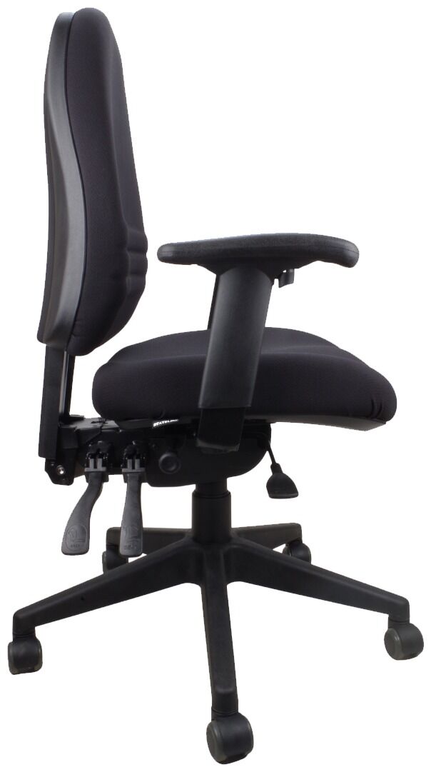 The Endeavour Pro Ergo Chair with Arms is a fully ergonomic operator chair featuring a 4-lever heavy-duty mechanism with seat slide and includes height adjustable arms for enhanced upper body support. The luxurious moulded foam seat and five-star spider base ensure comfort and durability.