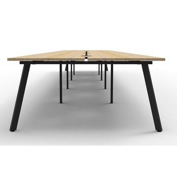 Eternity 10 Person Double Sided Workstation Black Frame Natural Oak Top - 6000mm x 1530mm x 730mm