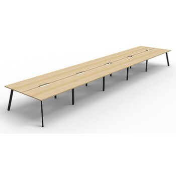 Eternity 10 Person Double Sided Workstation Black Frame Natural Oak Top - 9000mm x 1530mm x 730mm