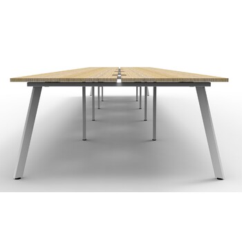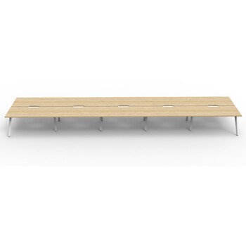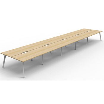 Eternity 10 Person Double Sided Workstation White Frame Natural Oak Top - 9000mm x 1530mm x 730mm
