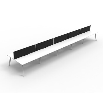 Eternity 10 Person Double Sided Workstation With Black Screen White Frame White Top - 6000mm W x 1530mm D x 1200mm H