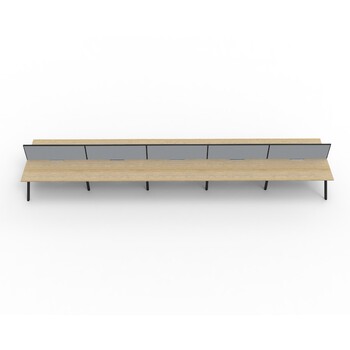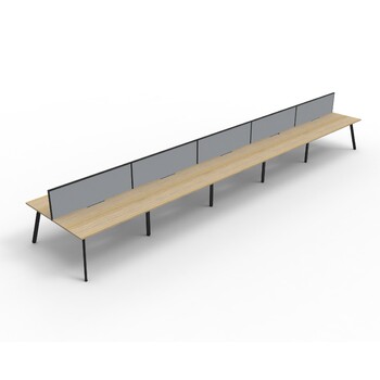 Eternity 10 Person Double Sided Workstation With Grey Screen Black Frame Natural Oak Top - 9000mm W x 1530mm D x 1200mm H