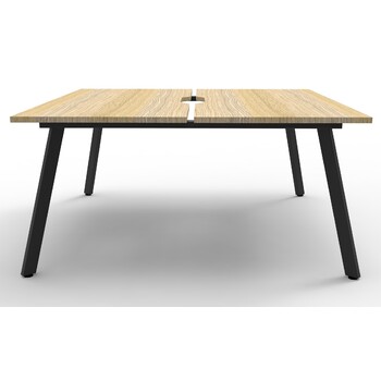 Eternity 2 Person Double Sided Workstation Black Frame Natural Oak Top [Size: 1500mm x 1530mm x 730mm]
