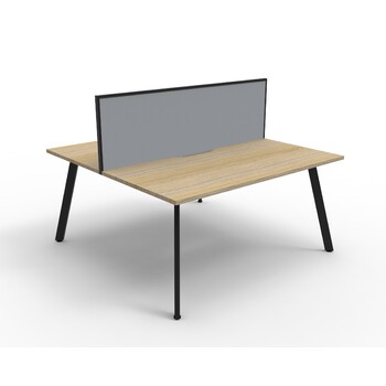 Eternity 2 Person Double Sided Workstation With Black Screen Black Frame Natural Oak Top - 1500mm W x 1530mm D x 1200mm H