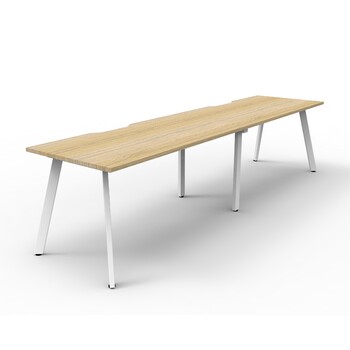 Eternity 2 Person Single Sided Workstation White Frame Natural Oak Top - 3000mm W x 750mm D x 730mm H
