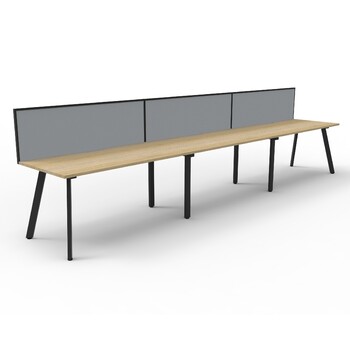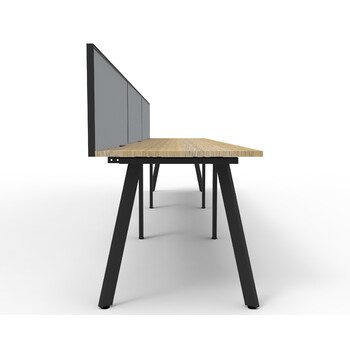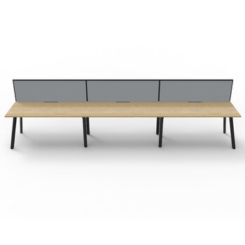 Eternity 3 Person Single Sided Workstation With Grey Screen Black Frame Natural Oak Top - 3600mm W x 780mm D x 730mm H
