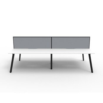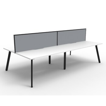 Eternity 4 Person Double Sided Workstation With Grey Screen Black Frame White Top - 2400mm W x 1530mm D x 1200mm H