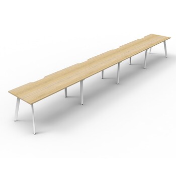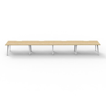 Eternity 4 Person Single Sided Workstation White Frame Natural Oak Top - 7200mm W x 750mm D x 730mm H